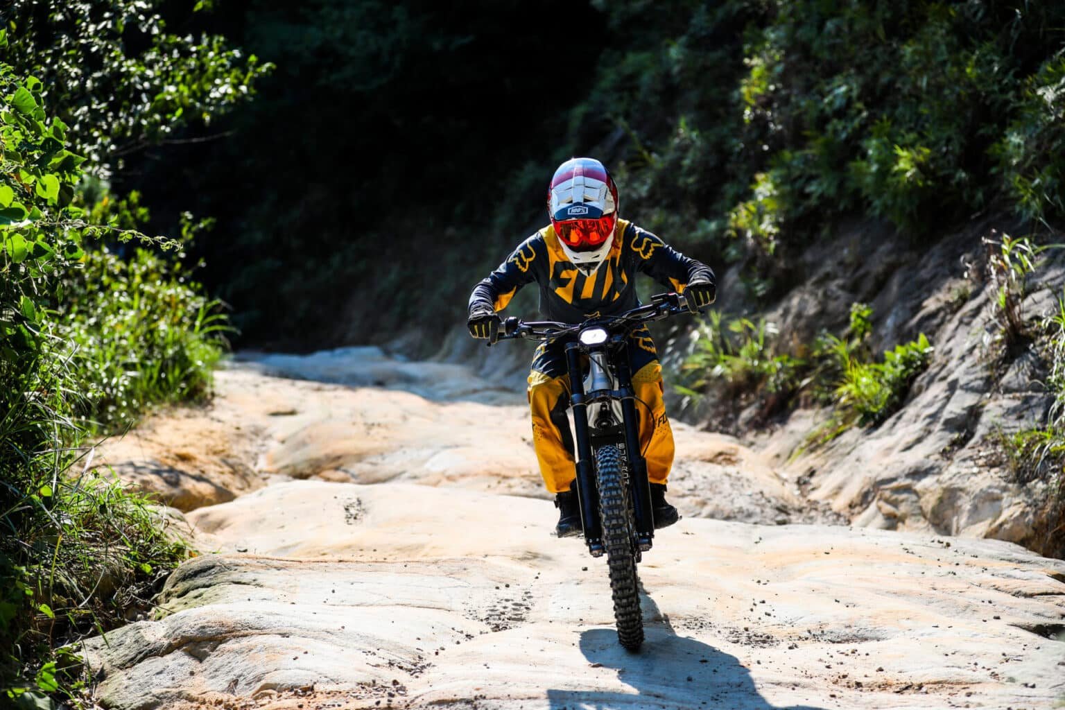 Las bicicletas Sur-ron se someten a pruebas y mejoras constantes, tanto por ciclistas profesionales como por nuestro equipo técnico. Hemos desarrollado un sistema de suspensión trasera multilink para nuestros modelos ligeros Bee, lo que significa que, tanto si recorres las calles de la ciudad como si te desenvuelves a fondo en la pista, tu nueva bicicleta se adaptará a cualquier terreno. Diversión a tope. En cualquier lugar.