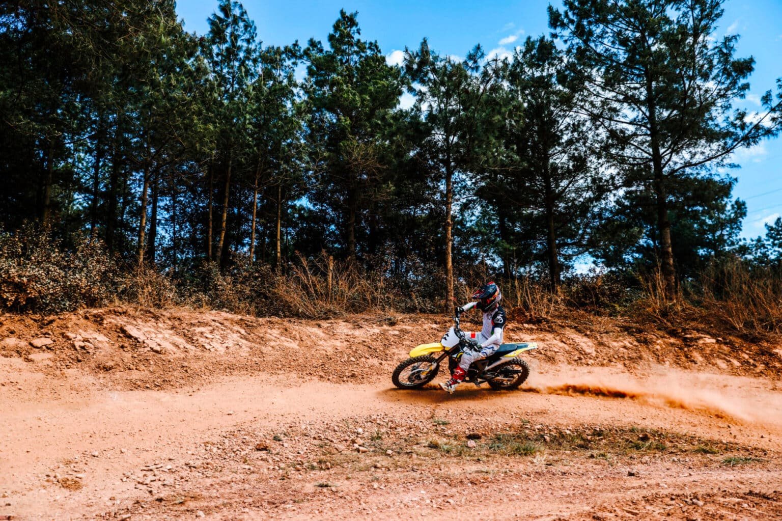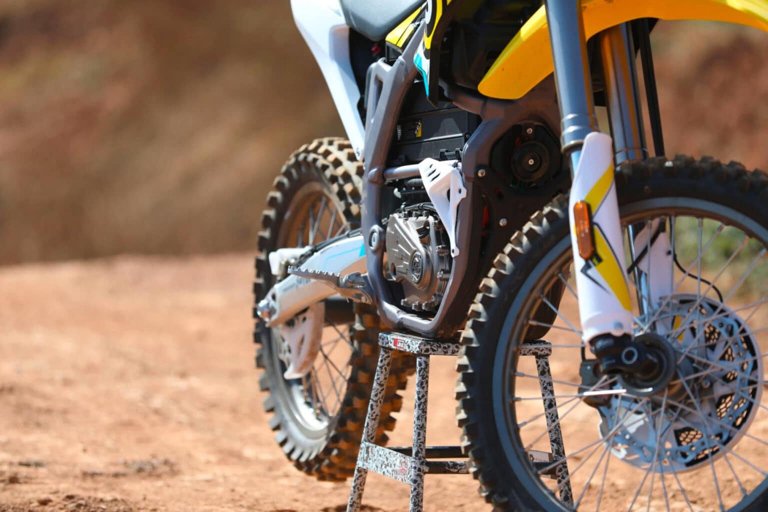 La Storm Bee cuenta con una horquilla delantera invertida de alto rendimiento de 47 mm con 290 mm de recorrido efectivo y un amortiguador trasero con 115 mm de recorrido efectivo. Personalizada y ajustada por el mejor equipo de ingeniería de Sur-Ron.